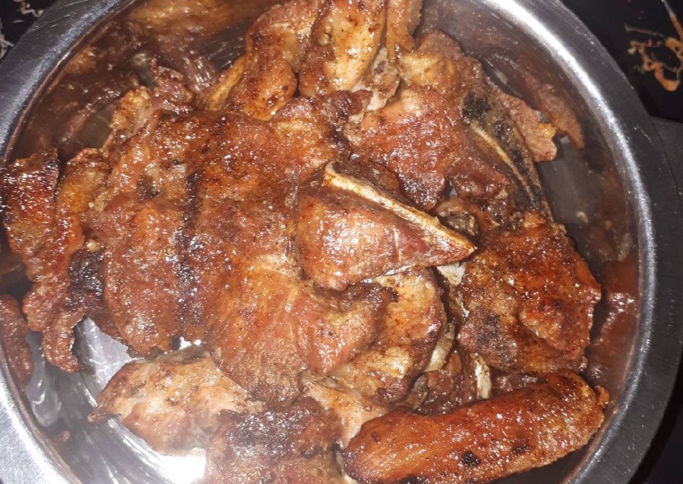- Place the pork pieces on a roasting tray, season with all pepper ingredients above, sprinkle salt and a little oil