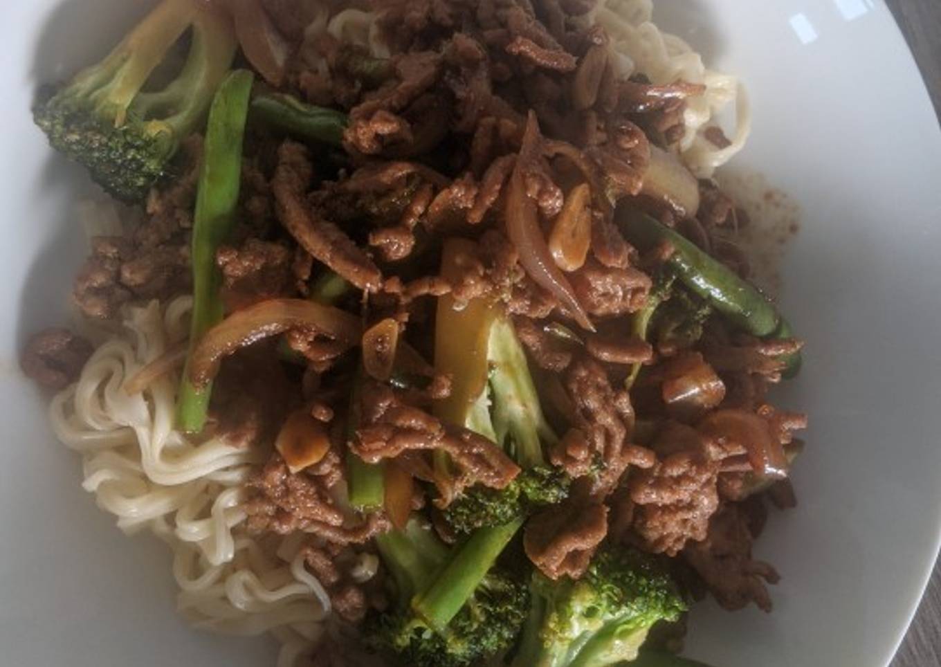 - Serve over noodles or rice